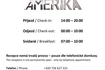 Recepce nemá trvalý provoz – pouze dle telefonické domluvy.